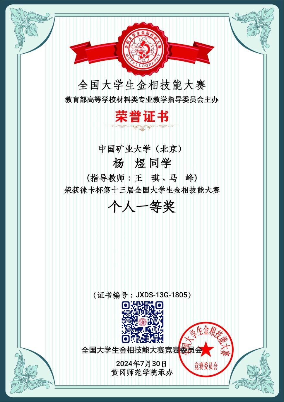 (5)王咏琪,中共党员,中国矿业大学(北京)材料科学与工程专业2020级本科生,现推免至清华大学电子工程系攻读硕士学位。曾担任机电学院学生会主席团成员、材料2020-1班班长。在校期间,发表三作EI期刊论文1篇,一作EI会议论文1篇,产出毕业论文获校级优秀本科生毕业设计(论文)一等奖,以负责人身份主持校级大创项目并顺利结项;获国家奖学金1次、校级特等奖学金2次;获评北京市优秀学生干部、校级优秀毕业生、校级优秀团干部、校级优秀团员、校级实践先进个人等荣誉称号,获中国高校计算机大赛全国优胜奖,第六届北京市大学生节能节水低碳减排社会实践与科技竞赛一等奖,美国大学生数学建模竞赛二等奖等各级竞赛奖项10余次。