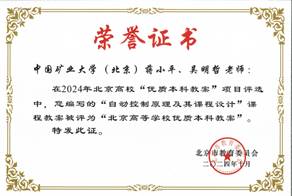 《自动控制原理》、《机械精度设计与检测基础》获北京高校优质本科教材课件;《公差与技术测量基础》、《自动控制原理》获北京高校重点优质本科课程;《自动控制原理》获北京市高等学校优质教案,实现了北京市优质本科教材、课件、教案的全覆盖。
