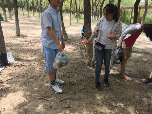 竞赛活动结束后,为了更加身体力行地参与到环保行动中去,两个支部的所有成员开始在公园中游人集中的区域进行垃圾回收和清理,虽然这些行动很微小,但是如果所有的党员都能够在生活中从细微处做起,做好行动的榜样,感染身边的每一个人,这份参与环保的力量是异常强大的,足够我们保护好地球母亲的身体健康!