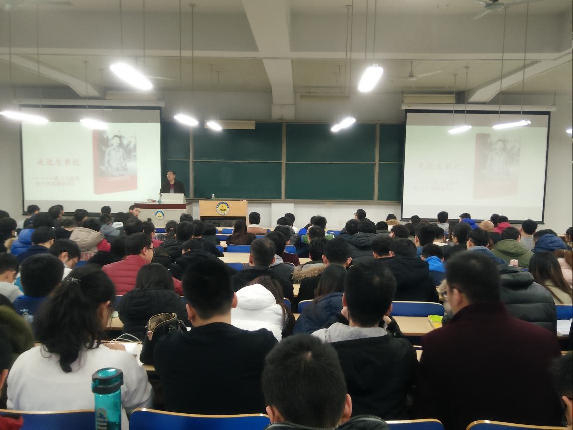 为响应党的十九大号召,深化“两学一做”学习教育精神,加强对学生党员的教育培训,坚定广大党员的理想信念,2017年11月23日晚,机电学院党委邀请马克思主义学院苏杭教授以《走近习近平总书记——读< 习近平的七年知青岁月>》为主题为全院学生党员共352人带来了一堂生动精彩的讲座。