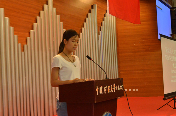 图五、参加宣誓的毕业生党员代表陈雪婷发言