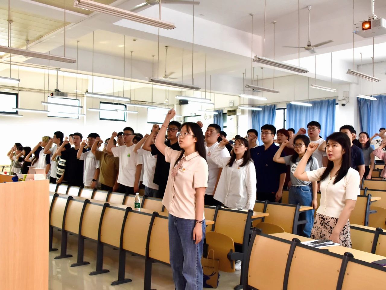 为鼓励毕业生党员不忘初心、牢记使命,夯实党性教育之基,发挥党员先进性和模范性作用,学院党委开展毕业生党员重温入党誓词宣誓活动。本科生第一党支部党员代表薛惠敏同志带领全体毕业生党员庄严宣誓,铿锵有力的誓言展现了学生党员对党的忠诚和坚定为共产主义事业奋斗终身的理想信念。