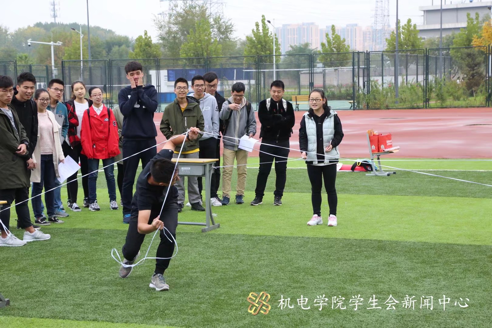 早8点30分,我院团学组织全体人员准时到达沙河校区操场,趣味运动会正式开始。此次运动会项目共有五项:曲折前行、无轨电车、仙人指路、瞻前顾后以及翻山越岭。首先,各部门代表抽签分组后,各个部门积极有序地投入到各项比赛中。趣味运动会项目考验了学生们的身体素质以及团体合作能力。赛场上可以看到选手们的奋力拼搏,团队的通力合作、相互支持。有欢声笑语,有加油呐喊,运动场上不仅仅有部门内部的合力协作,更有团学组织各部门之间的交流互动。