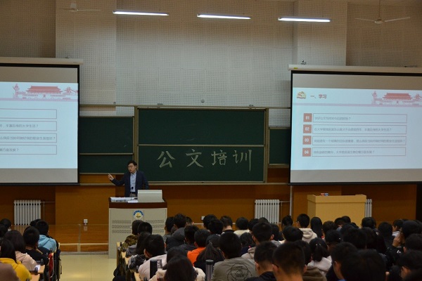 为提高我院学生干部公文写作能力,我院团委于2017年10月29日18:30在沙河校区教一楼327举办了第五届公文培训(第一期)。我校校友蔡治廷应邀来校为学生干部讲解公文写作的基础知识。