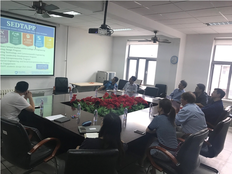 2018年5月10日,美国宾州州立大学Sven G. Bilén教授和Xin Wu教授来我院进行交流。程红副院长、各系系主任、学院本科教学秘书参加了座谈。