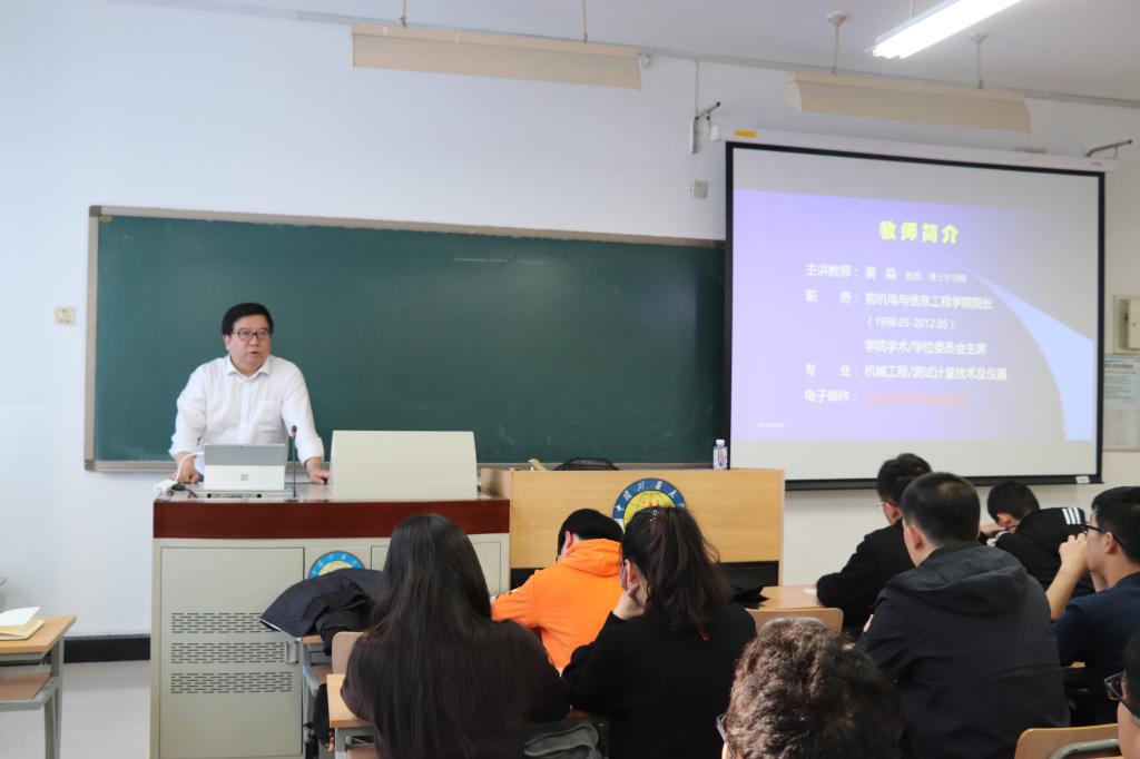 吴淼老师是机电学院资深教授、博导,也是行业著名专家,获国务院“政府特殊津贴”,先后承担多项国家863和973科研项目和获得多项教育部和煤炭行业科技和北京市教学奖励。吴教授结合在指导培养研究生方面的丰富经验,旁征博引地围绕着“学习与成绩、研究与成果”、“课题与素质”、“流程与毕业”、“研究课题实例”等四个方面内容展开了精彩论述,阐释了研究生教育是个性化教育,尽管其课题来源各不相同,要求多种多样,但都是对研究生的专业能力、工作能力、研究能力和创新能力的培养,强调注重练就“会想、会做、会写、会说”四会能力,以求达到较高的研究生培养标准。同时,吴教授以生动幽默且富有哲理的语言讲解了研究生期间的注意事项及撰写论文的常见误区。最后,吴教授介绍了自己的科研团队及科研项目,使同学们对行业前沿技术有了更深的了解。