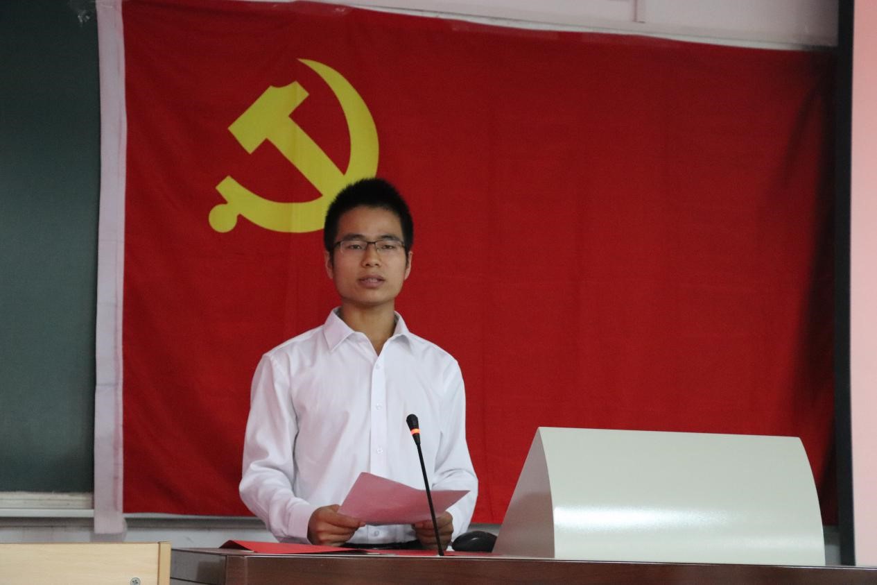 大会在庄严的国歌声中开始,学院党委秘书韩小愚首先向大会宣读了新入党同学名单,学工办主任曹洪治带领全体新发展党员和参会代表面对党旗庄严宣誓。