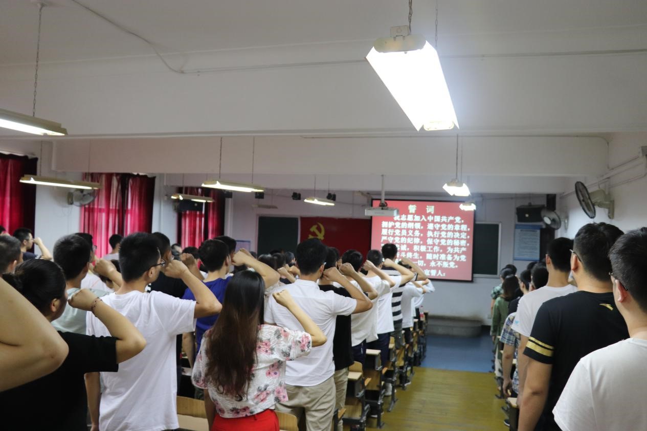为深入学习宣传贯彻十九大精神,继续践行“两学一做”学习教育,坚定学生党员理想信念,2019年6月21日下午,机电与信息工程学院党委在理化楼206召开了“2018-2019学年度新党员入党宣誓大会”。学院党委书记张晓红及辅导员出席大会,学院117名新发展党员、毕业生党员、学生支部书记、入党积极分子代表等共150余人参加大会。