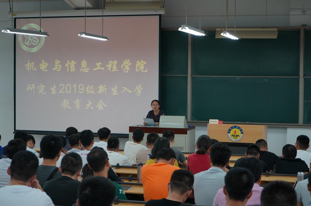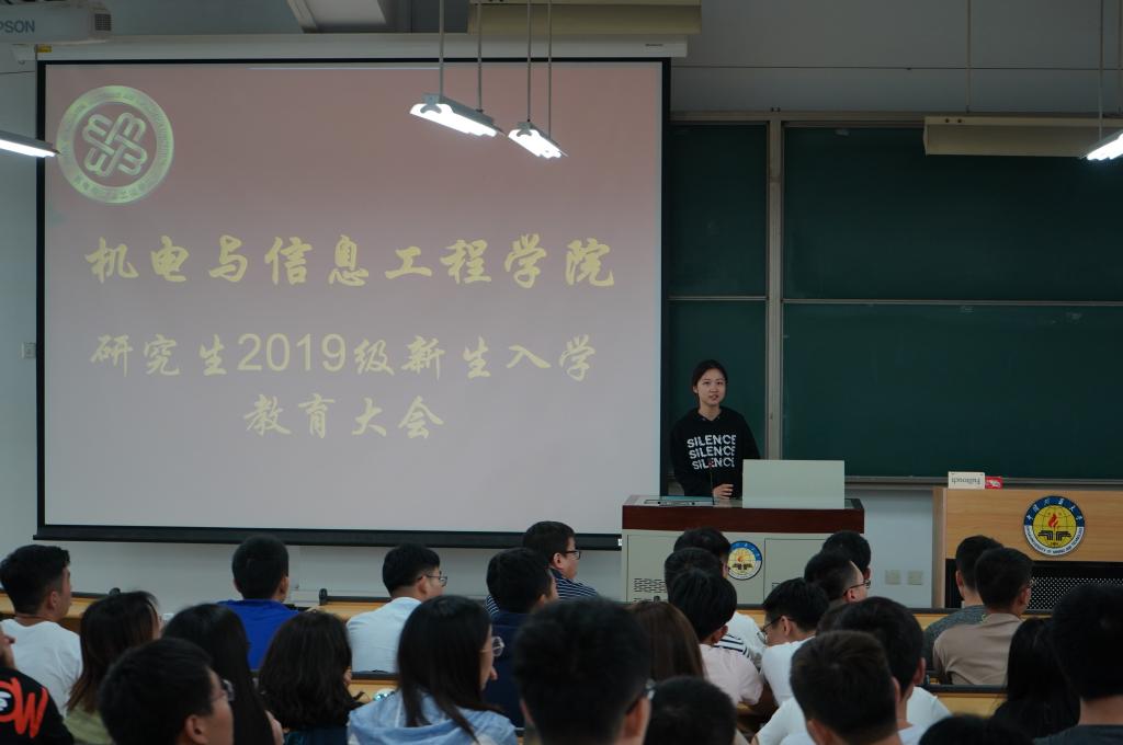 9月12日下午,机电与信息工程学院在教学楼210召开2019级研究生新生入学教育大会。学院领导班子全体成员出席大会,院办全体工作人员和2019级26名博士研究生、281名硕士研究生参加大会。大会由学院党委秘书、研究生辅导员韩小愚主持。