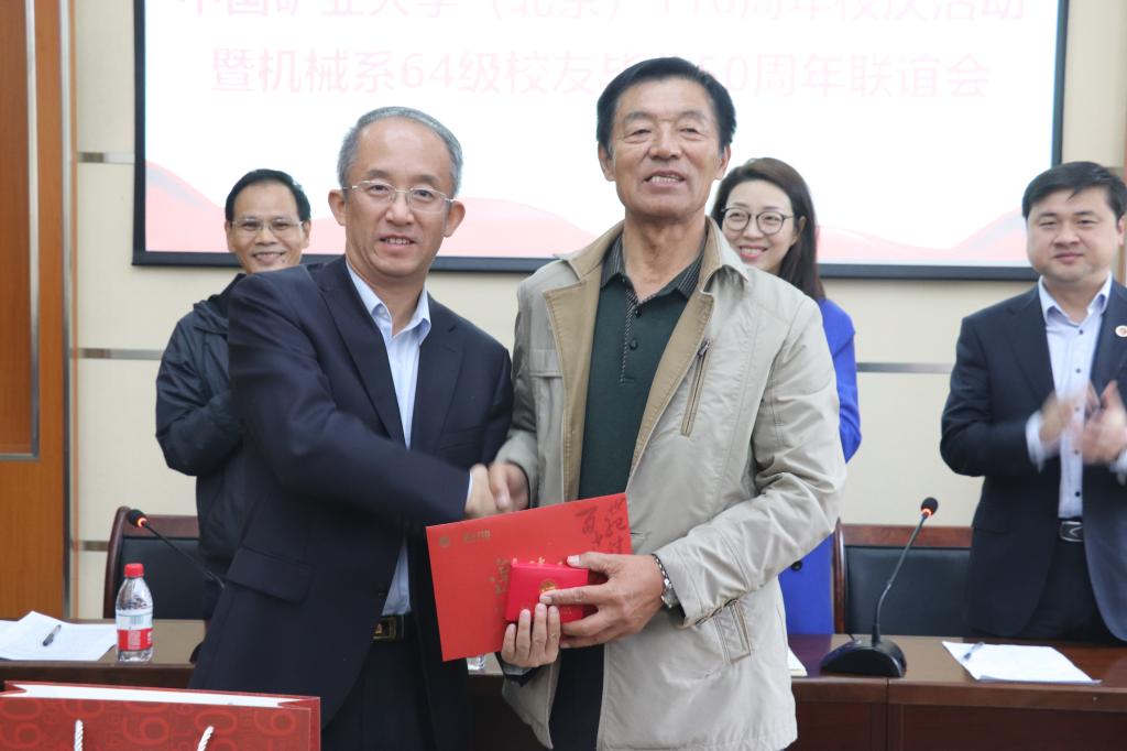 10月16日机电学院64级机械系校友30余人返校举行毕业50周年座谈会。校长葛世荣在民族楼前亲切接见了返校校友,对他们返校表示热烈欢迎,对老校友心系母校,关心母校发展表示感谢。