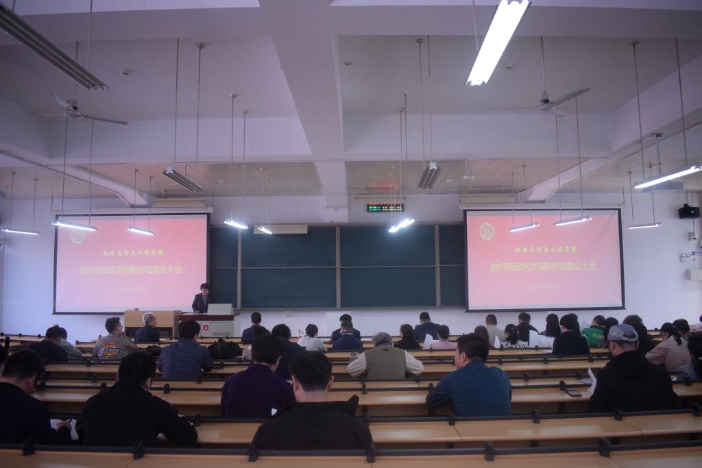 4月20日下午,机电与信息工程学院在教学楼209召开教师思想政治和师德师风建设大会。党委书记张晓红、院长张晞、学院其他领导班子成员及全体教职工参加了会议。会议由张晓红主持。