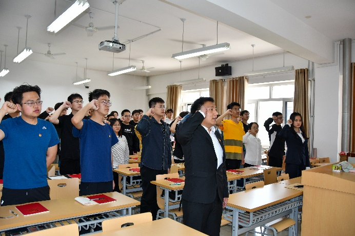 2021年5月12日下午14点,机电与信息工程学院沙河校区党支部在沙教1-501召开“入党新起点·百年新征程”入党宣誓大会。沙河校区党支部书记杨文凯、2020级本科生辅导员和40名预备党员参加大会,大会由2020级本科生辅导员朱玥玚主持。