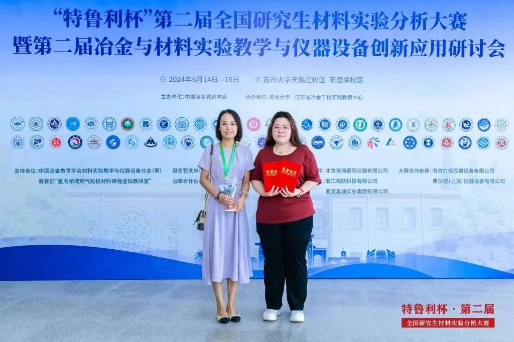 6月14日至16日,“特鲁利杯”第二届全国研究生材料实验分析大赛暨第二届冶金与材料实验教学与仪器设备创新应用研讨会在苏州大学举行,本次大赛由中国冶金教育学会主办、苏州大学承办。我院材料硕2022级赵泓轩、材料硕2023级杨志卉两位同学在马峰老师和王琪老师的指导下,经过一个月的刻苦训练,在本次比赛中荣获一等奖。