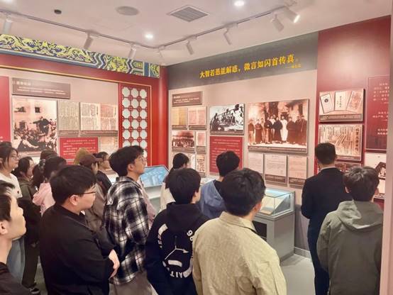 随后,在工作人员带领下,全体党员在李大钊革命事迹陈列室中开展微党课学习。工作人员详细介绍了李大钊同志的生平,从青年时代到北大时期,从“五四运动”到“相约建党”,再到英勇就义。党员同志通过《新青年》创刊号原件、李大钊手书《狱中自述》等珍贵文物,结合历史影像资料,系统了解了李大钊同志传播马克思主义、创建中国共产党、领导北方工农运动等不朽功绩。展柜中斑驳的镣铐、泛黄的书信等实物,生动再现了革命先驱“铁肩担道义,妙手著文章”的革命人生。每名党员都在认真倾听工作人员的讲述,深切地感受其人格魅力。