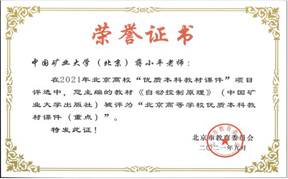 《自动控制原理》、《机械精度设计与检测基础》获北京高校优质本科教材课件;《公差与技术测量基础》、《自动控制原理》获北京高校重点优质本科课程;《自动控制原理》获北京市高等学校优质教案,实现了北京市优质本科教材、课件、教案的全覆盖。